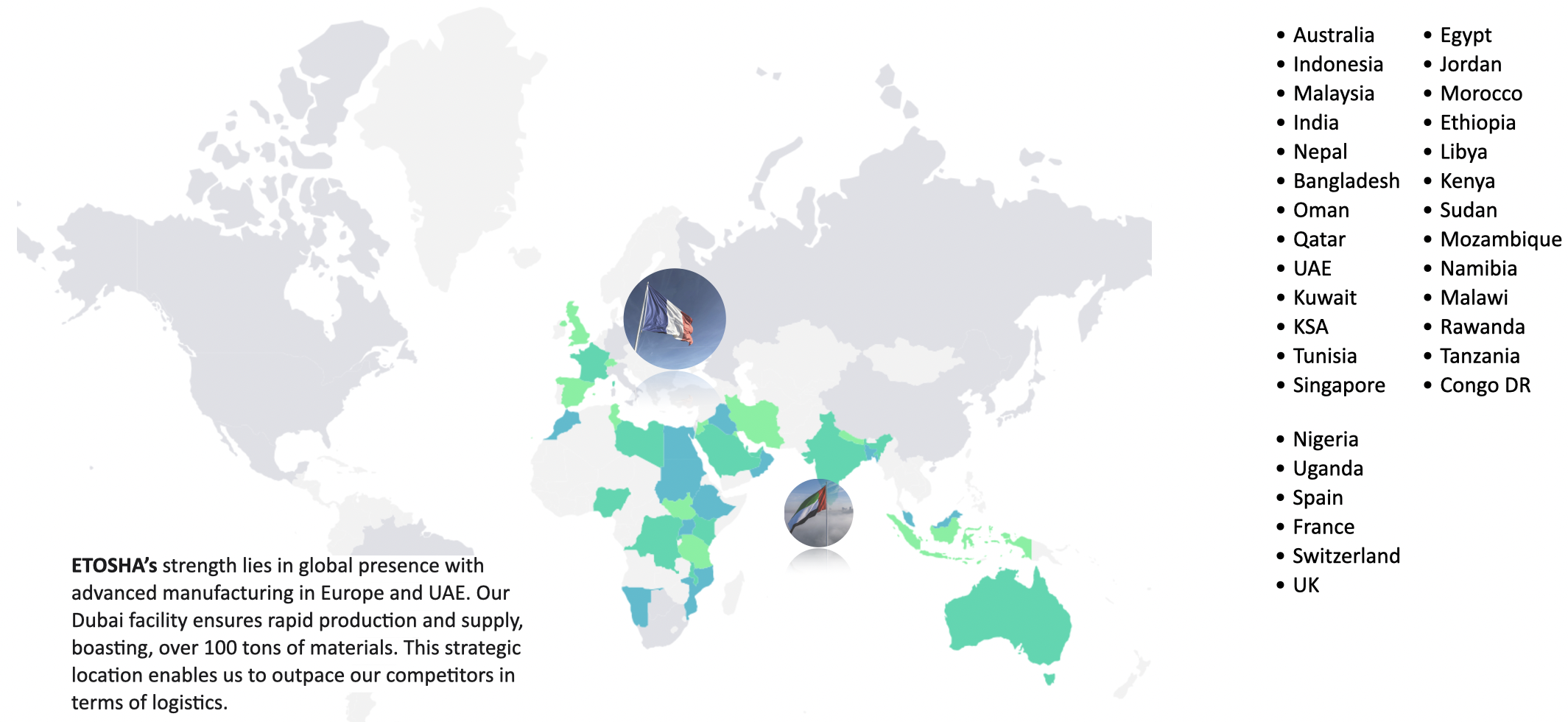 We at ETOSHA, are positioned strategically at the world-renowned Jebel Ali port in the UAE, our logistics infrastructure gives us a powerful edge in the global fragrance and flavor industry.